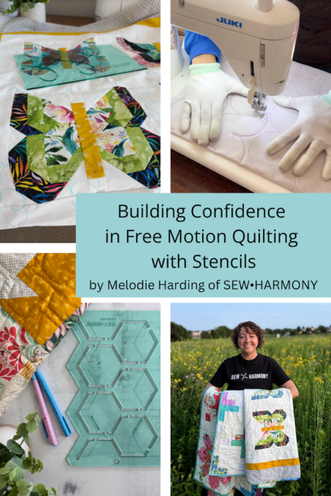 Hi there! I'm Melodie Harding with SEW • HARMONY, and today I want to share with you how using stencils can help you build confidence in free motion quilting (FMQ). I've always loved being able to finish my quilts myself-whether it's hand quilting, stitch-in-the-ditch, or custom free motion quilting. But over time, stenciling has become my favorite method. Marking a continuous line edge-to-edge pattern has been a game changer in my quilting journey-and I'm excited to help you experience that same boost in confidence!