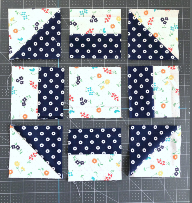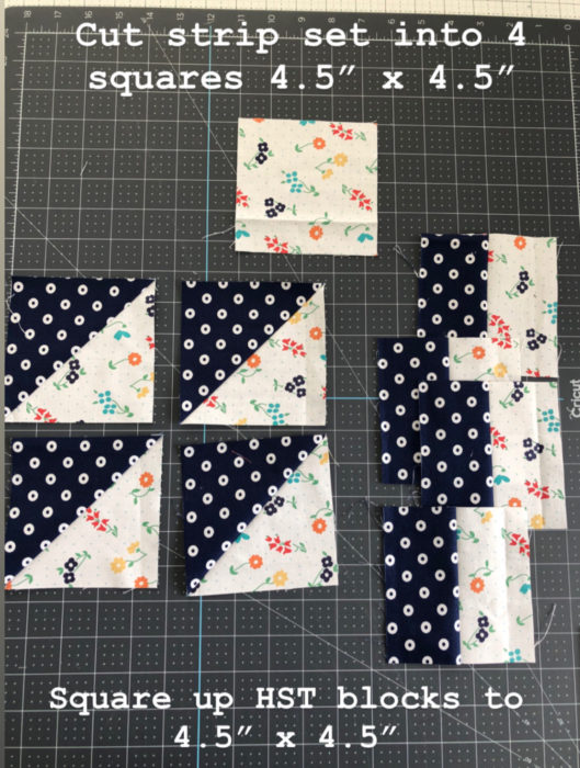 Square up Half Square Triangle blocks to 4.5" x 4.5".