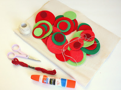 I'm loving this felt circle pillow--very festive for the holidays!