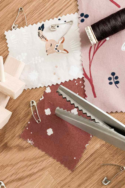 When you have your own small precuts or scraps at home, using pinking shears for the edges will help ensure the fabrics stay at that original dimension as much as possible instead of fraying beyond use before they can be sewn into a project.