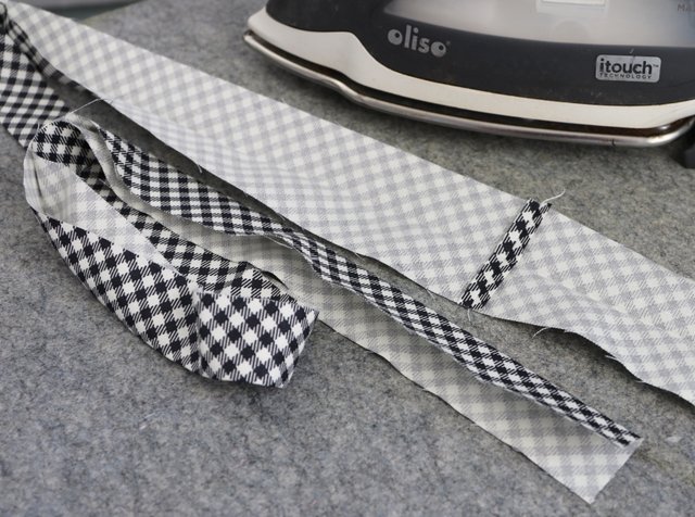 Press connecting seams open (so you don't have bulk) and then fold in half lengthwise and press.