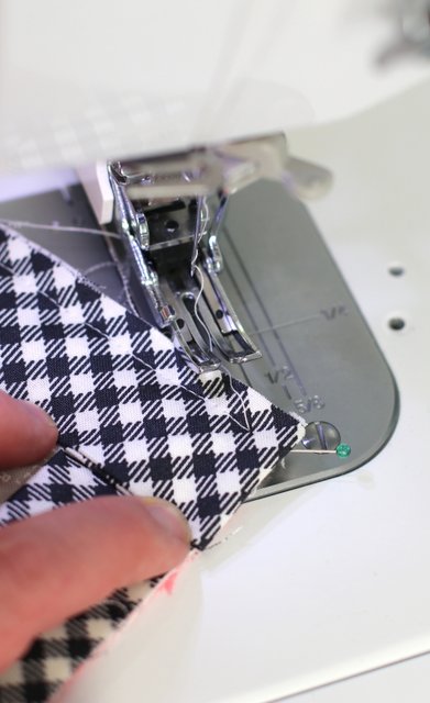 When you get to the corner keep flap down and sew until you are ¼" away from the corner.