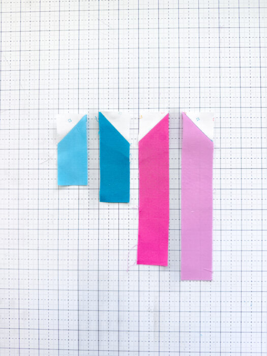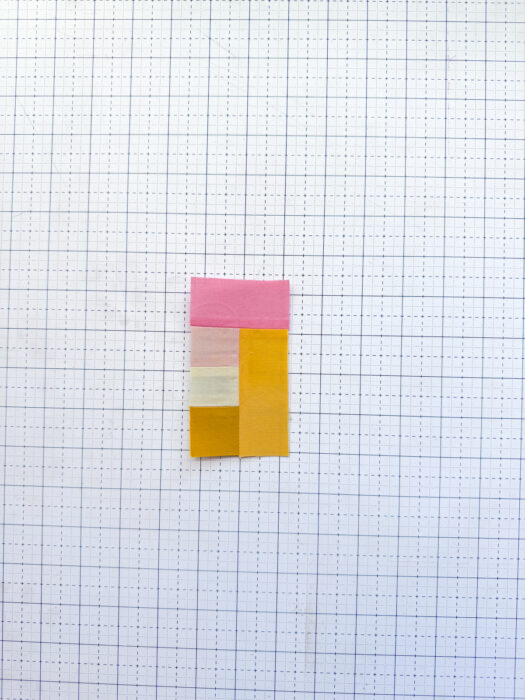 Before we can assemble Unit 3, we need to add a few background pieces onto some of the strips we'll be sewing together to give our heart some cute detail.