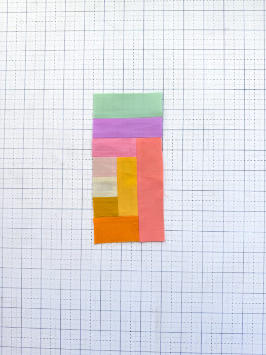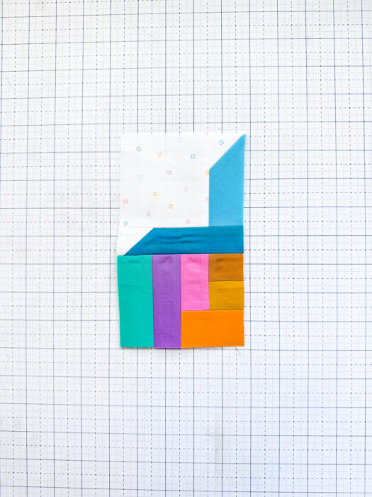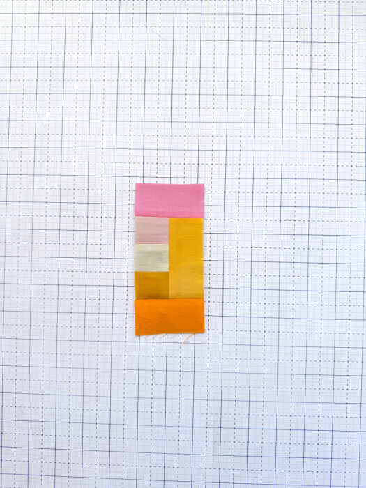 Last step for Unit 1: add I to the top of the unit and press the seam open. Set Unit 1 aside and move onto Unit 2!