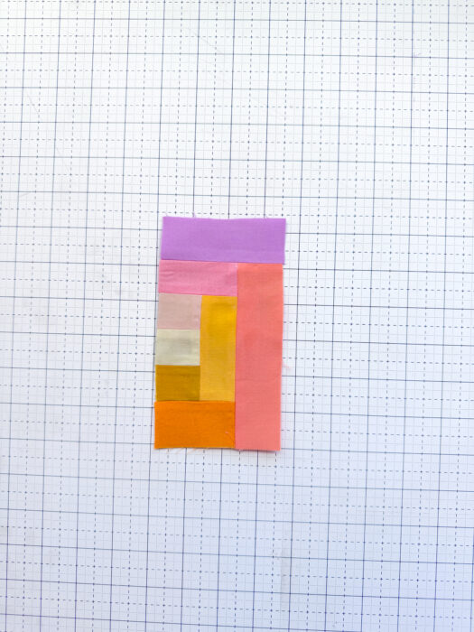 The pattern is assembled a little differently than a traditional log cabin block, since the block is on point and we want to get that cute heart shape. We'll be assembling it in 3 units that will be sewn together at the end.