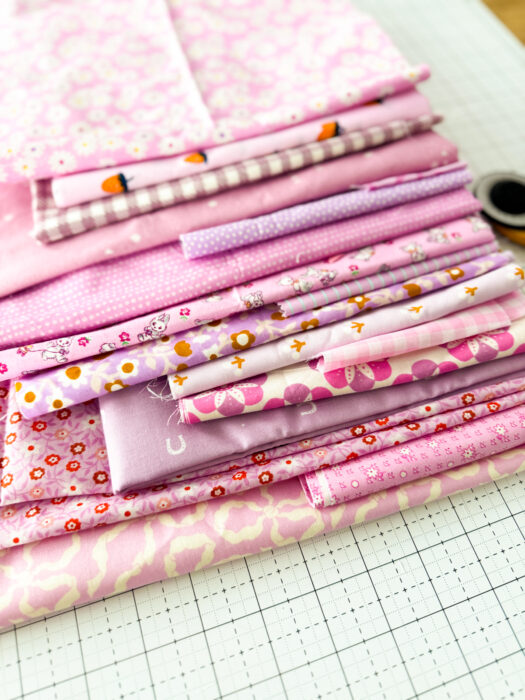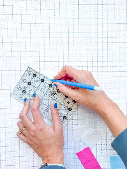 Press your fabric well and then refer to the Cutting Instructions section of the pattern and cut the fabrics you've selected to the correct sizes using a rotary cutter and quilting ruler. I've included printable labels in the pattern, so you can label the pieces as you cut to help keep yourself organized. I like to use a binding clip to hold the label to each cut fabric piece.