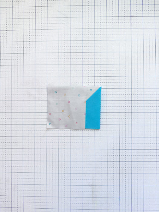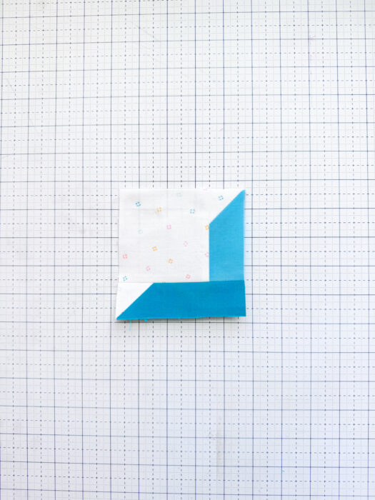 Bonus Tip: if you find your stitch and flip corners get wonky, reverse the order of pressing and trimming. If you press first, you can align the corner with the fabric that will be trimmed away to help keep your piece nice and square as you press, then fold it back before you trim the excess away.
