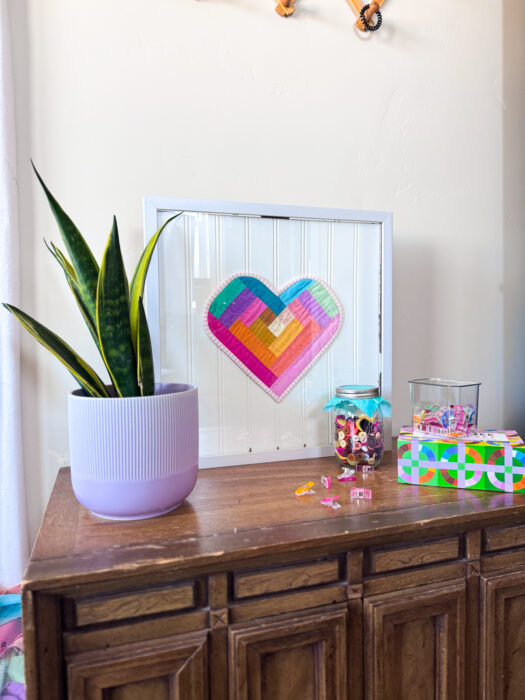 This 8" (finished) Log Cabin inspired heart block is an amazing scrap buster and makes the sweetest Valentine's Day decor (or all year round decor if you love hearts like I do!)