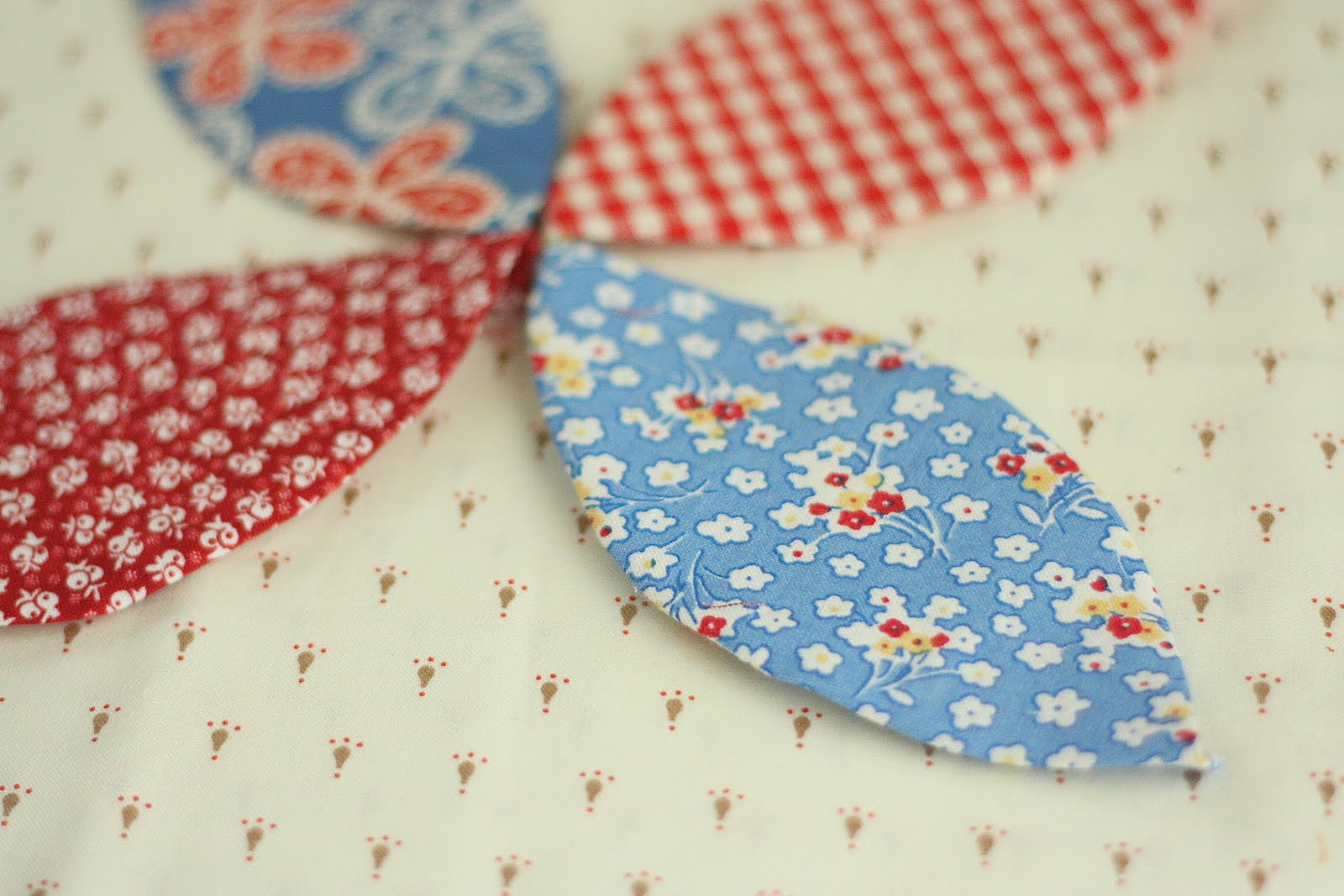 Have fun! I'm just wondering how you're doing the orange peels...did you use a template/iron to get your pieces prepped for hand applique?