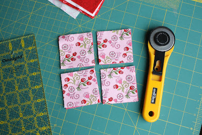 Thanks to the generosity of the Fat Quarter Shop I was able to make a festive Valentines mini to festoon my kitchen table for February. (Try saying that 5 times fast.) And today I'll share how I did it. Pretty simple - definitely not rocket science, but it's always nice when someone else does the figuring, right?