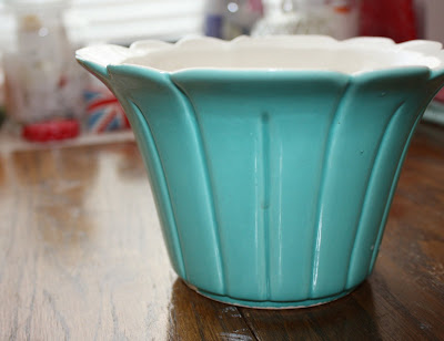 The vase is an absolute beauty. Do you know I was blog hopping the other day (forget which blog) and the post was all about how turquoise is in now! And this vase looks close enough to count!<br /><br />My thrifting finds this week were:<br />1 Ann Taylor skirt, $4<br />1 ? brand skirt, $5<br />1 pair boys tennis shoes (brand new, Target brand), $6<br /><br />Gah, I love thrifting!!<br /><br />