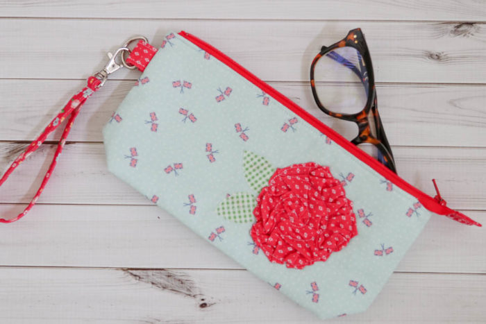 Ameroonie Designs is the master of zipper pouches and has a variety of tutorials to make zipper pouches in different sizes listed here. She also has a tutorial to make the ruffled scrunched flower tutorial here.